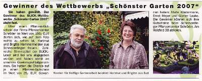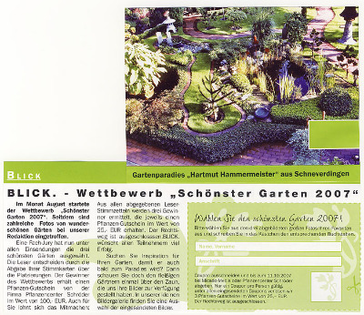 einen Wettbewerb für den schönsten Garten, bei dem ich mitgemacht habe. Ich habe eine Handvoll Fotos eingesendet und in der nächsten Ausgabe stand ich auch mit zur Wahl :